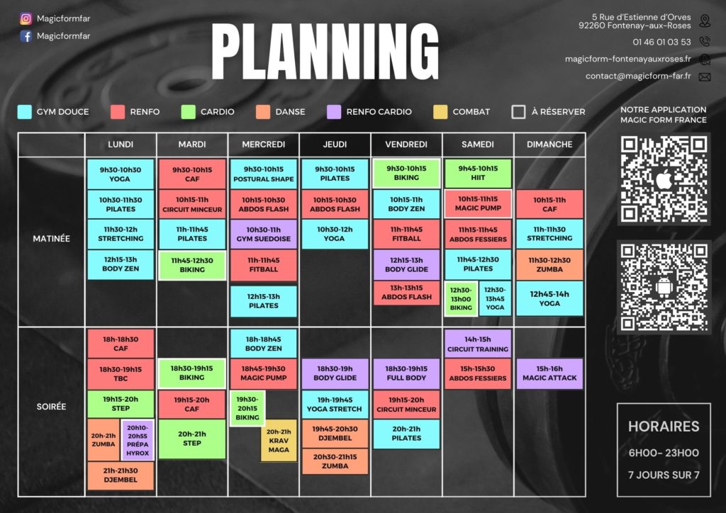 PLANNING Planning actuel pour l'année 2025-2026 🙂 La réservation des cours simplifiée avec l’application Magic Form!